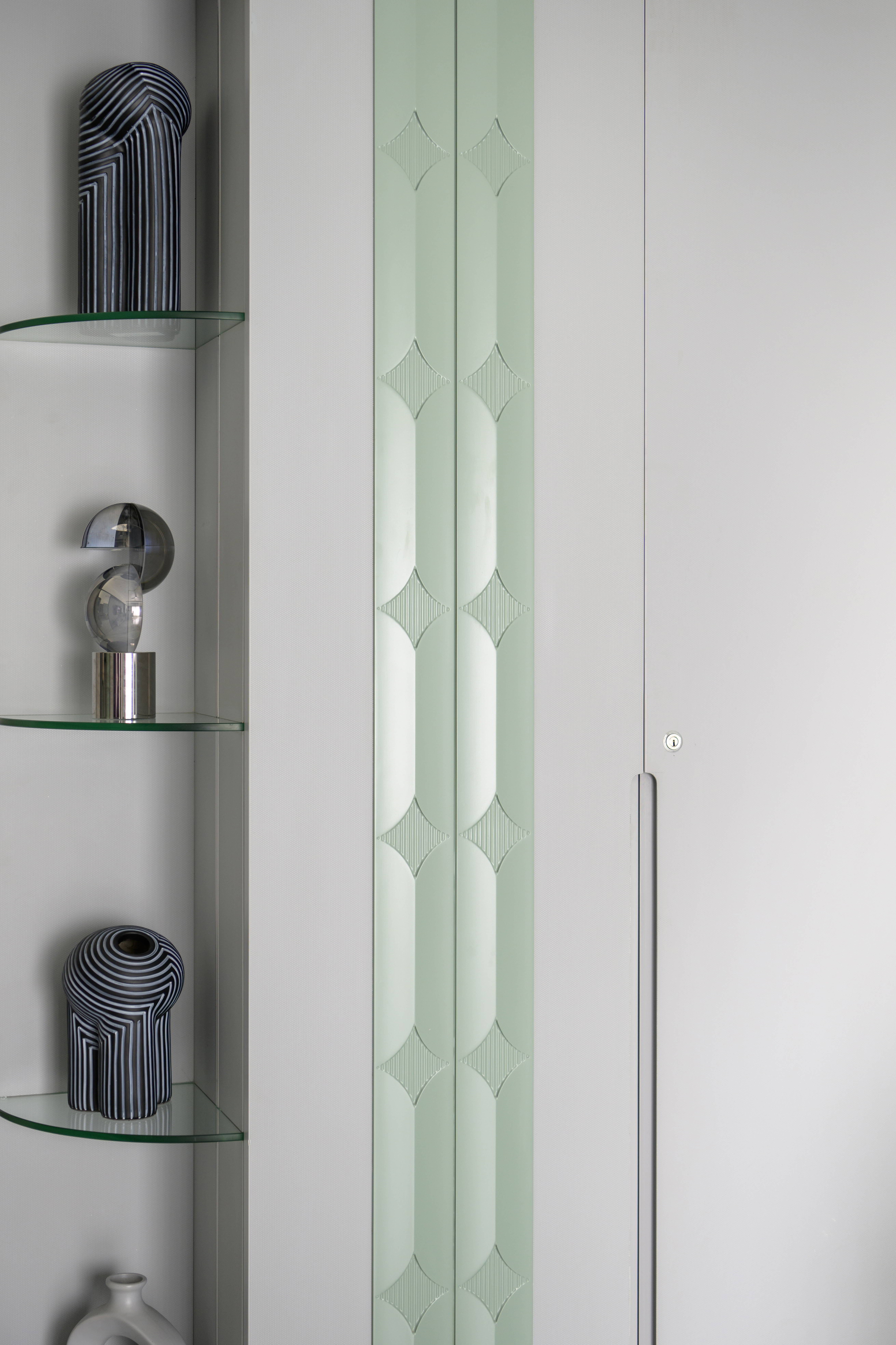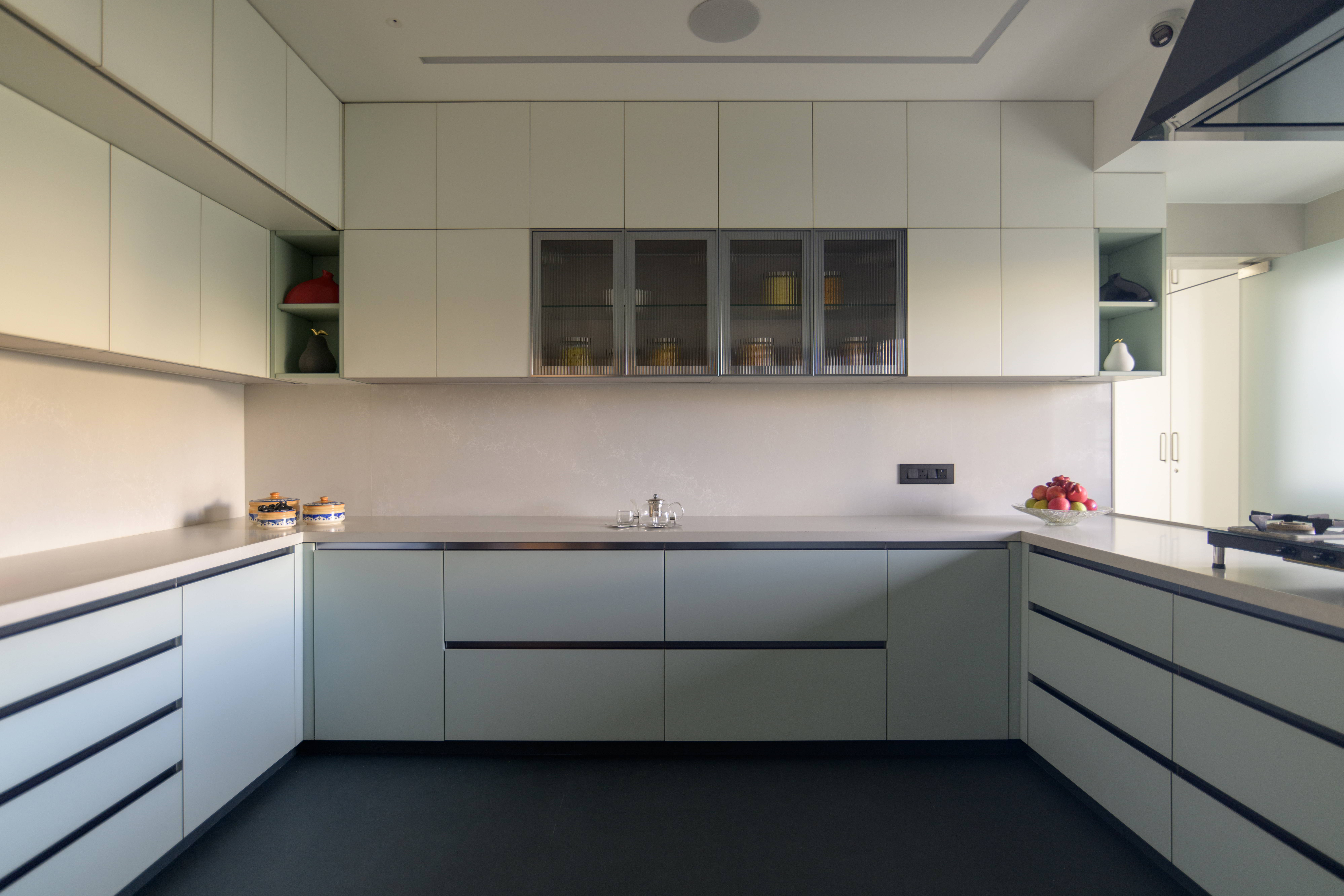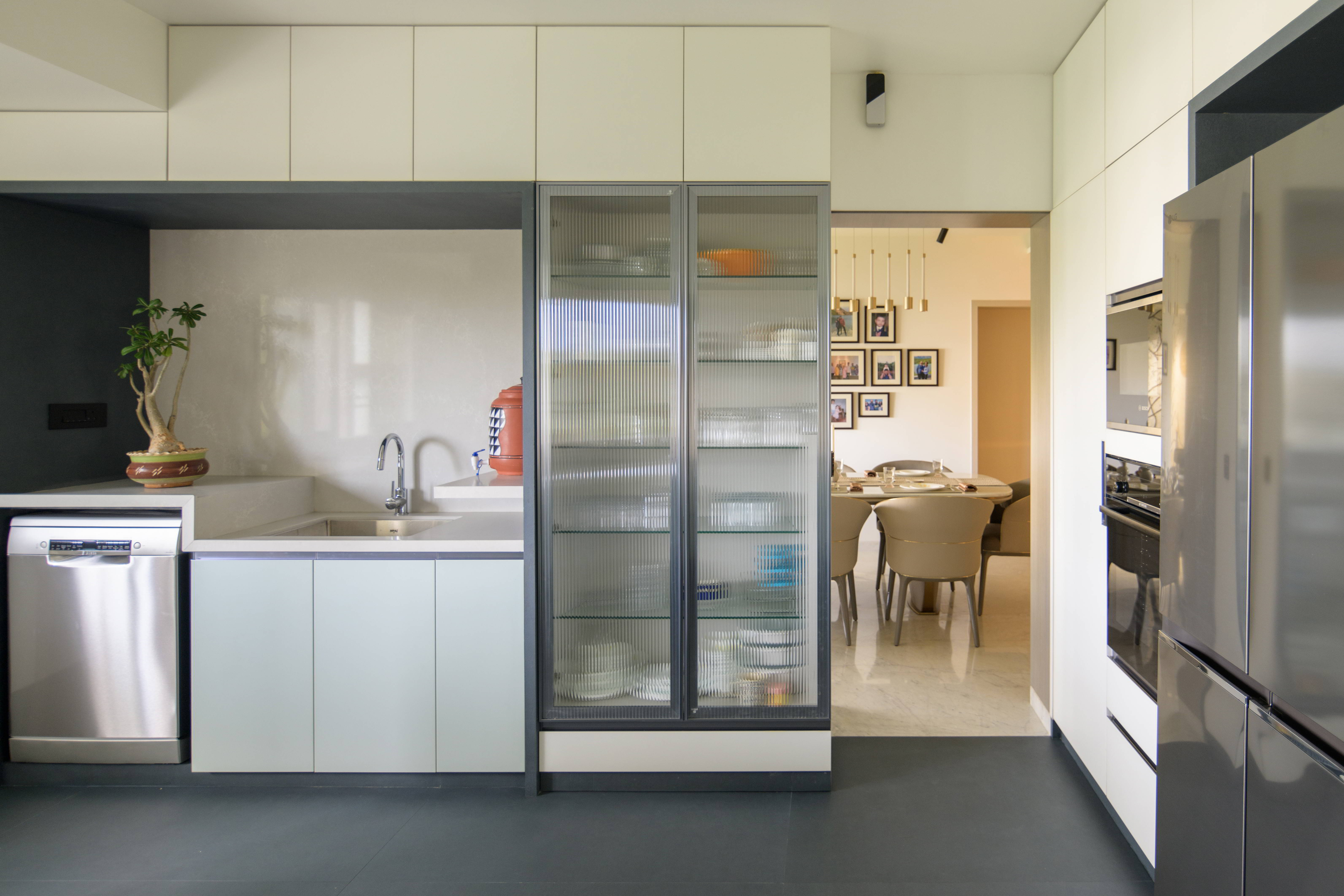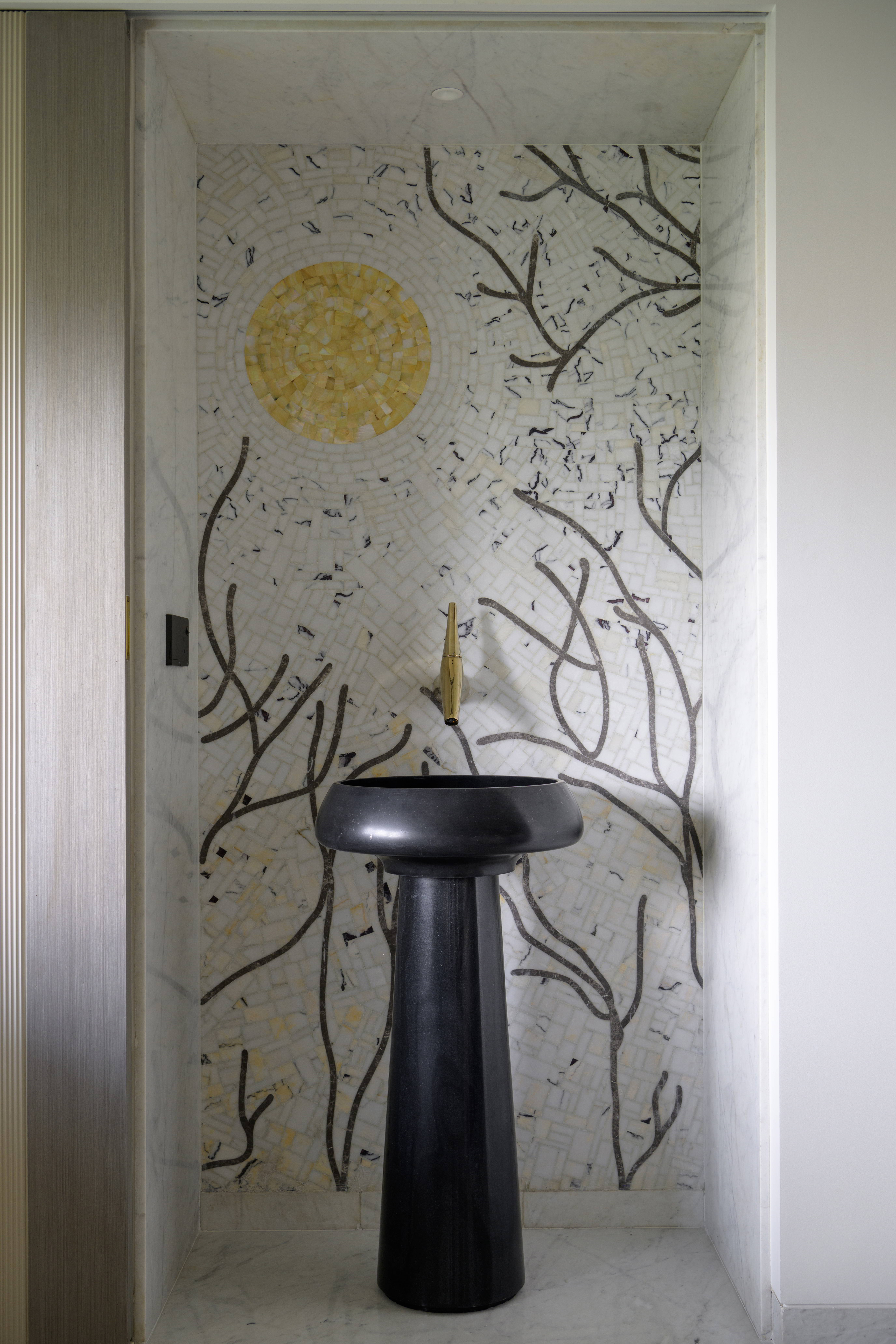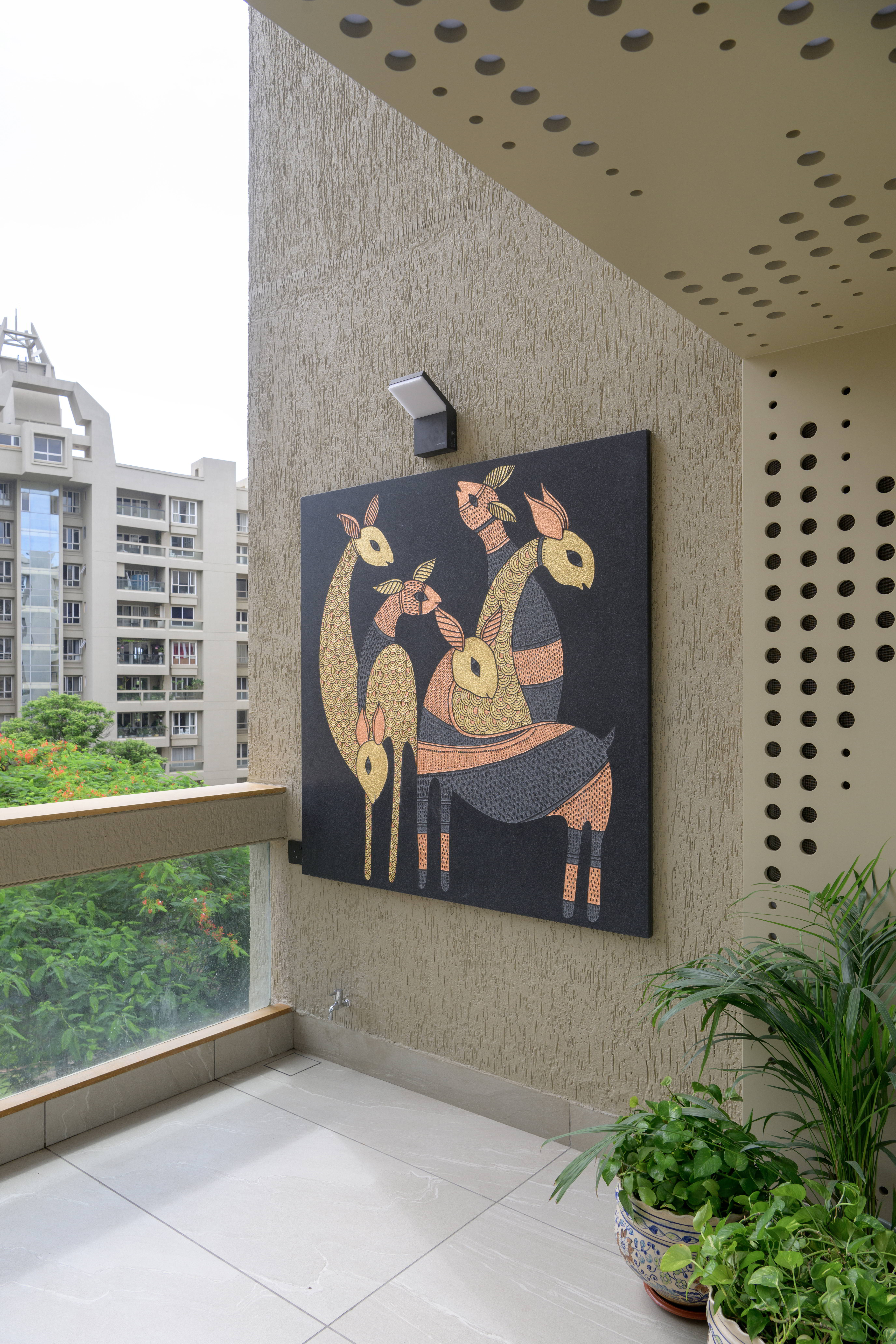 This residence is designed as a serene, contemporary retreat where elegance meets comfort in every detail. A soft, neutral palette forms the foundation of the space, allowing luxurious textures, metallic accents, and carefully curated decor pieces to shine effortlessly. The living area is anchored by plush seating in muted tones, complemented by striking gold artwork and sculptural wall elements that add depth and sophistication.