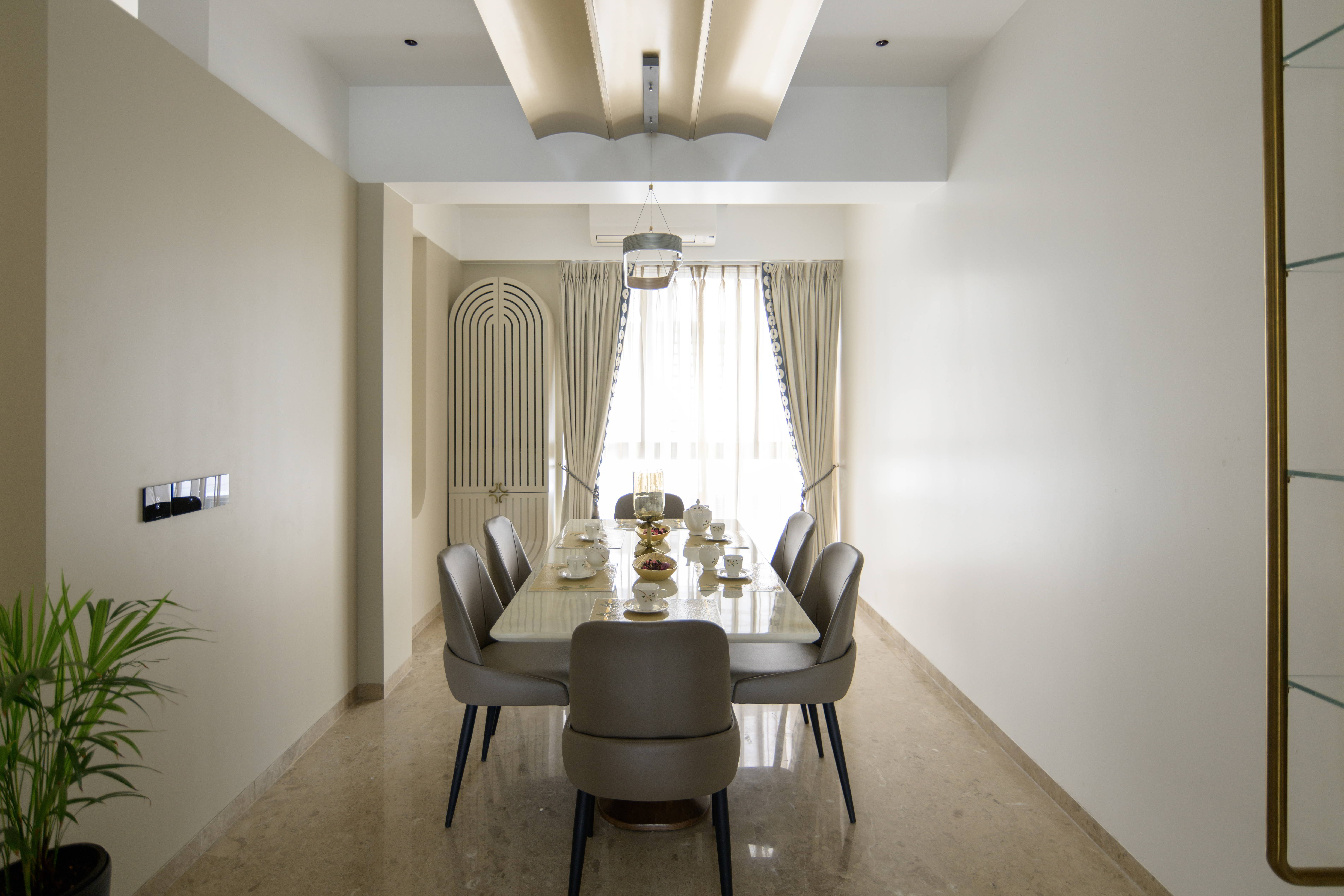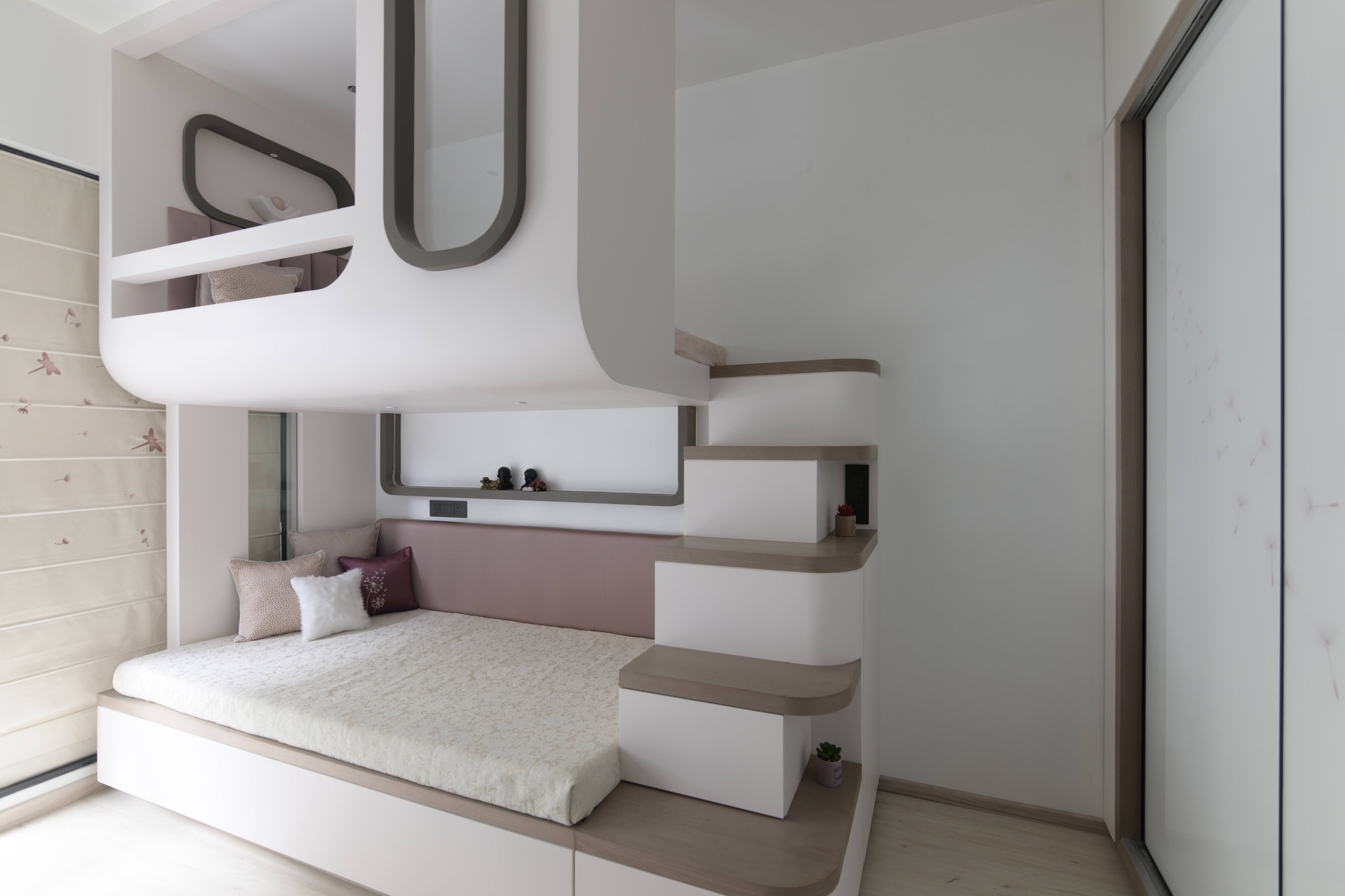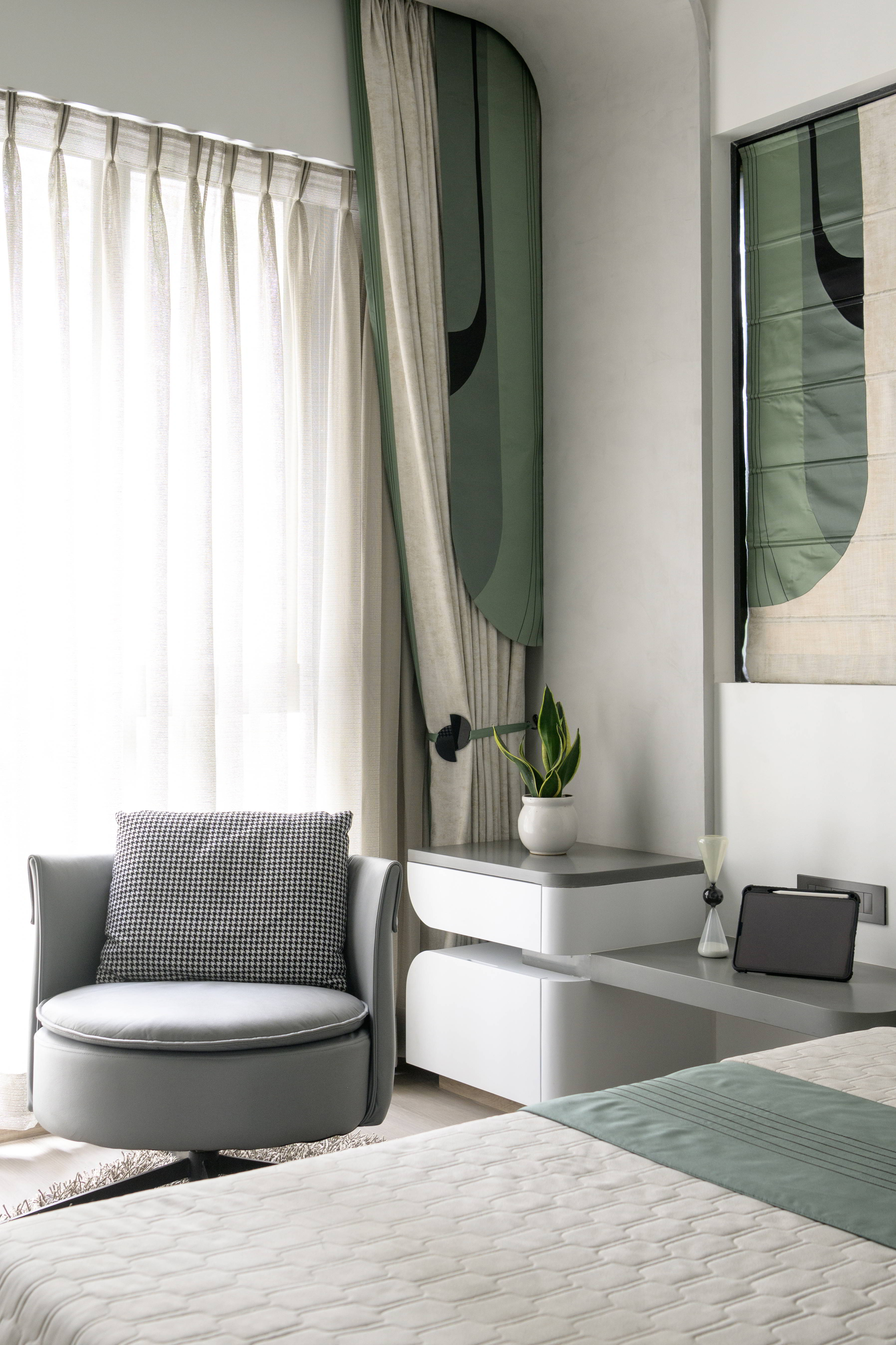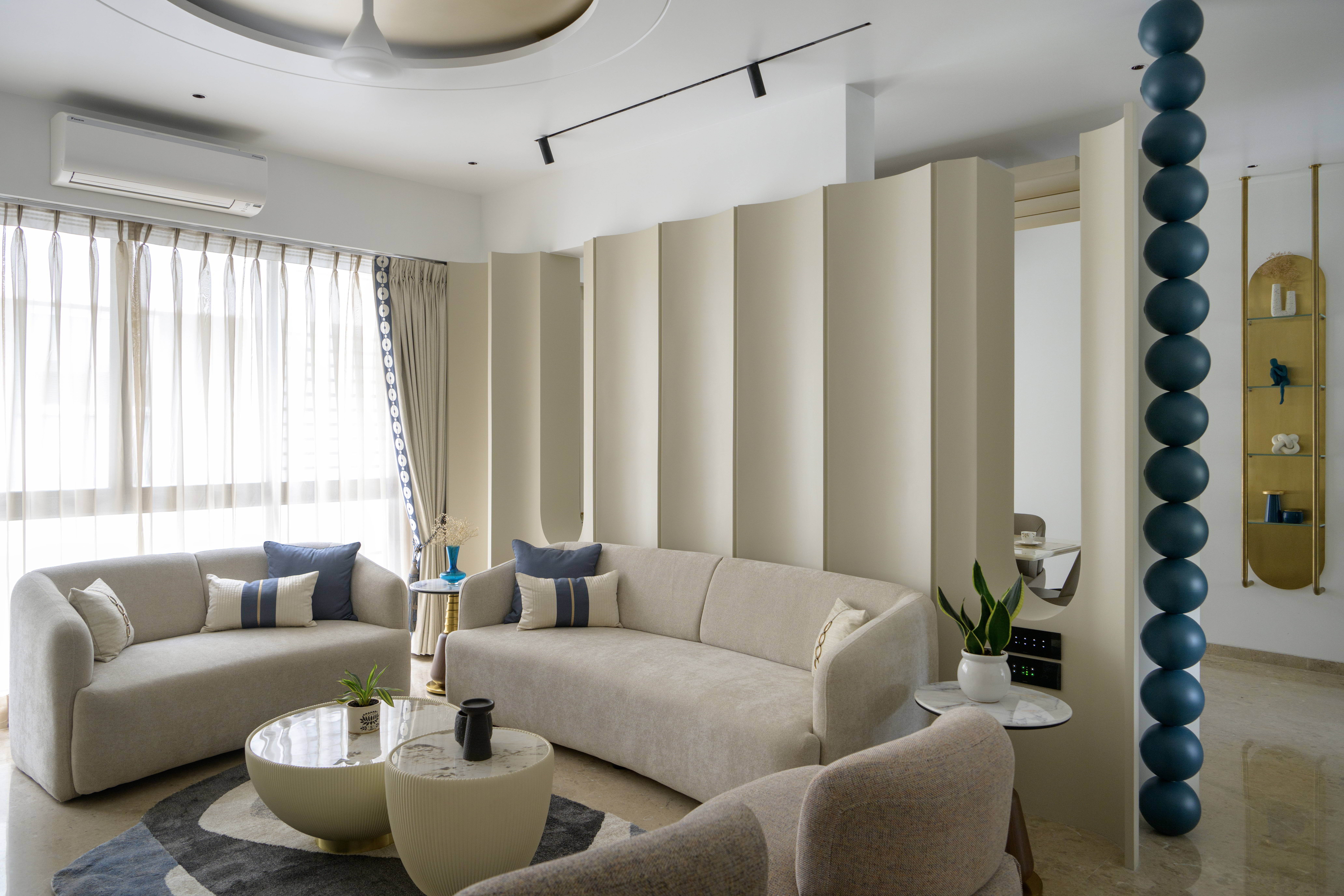 The overall design language follows a modern contemporary approach, softened with gentle curves and rounded elements. These soft edges lend a warm and comforting atmosphere while maintaining a clean, elegant aesthetic. Crafted for a family of six, the home balances functionality with a youthful energy, ensuring every space feels lively yet thoughtfully planned.