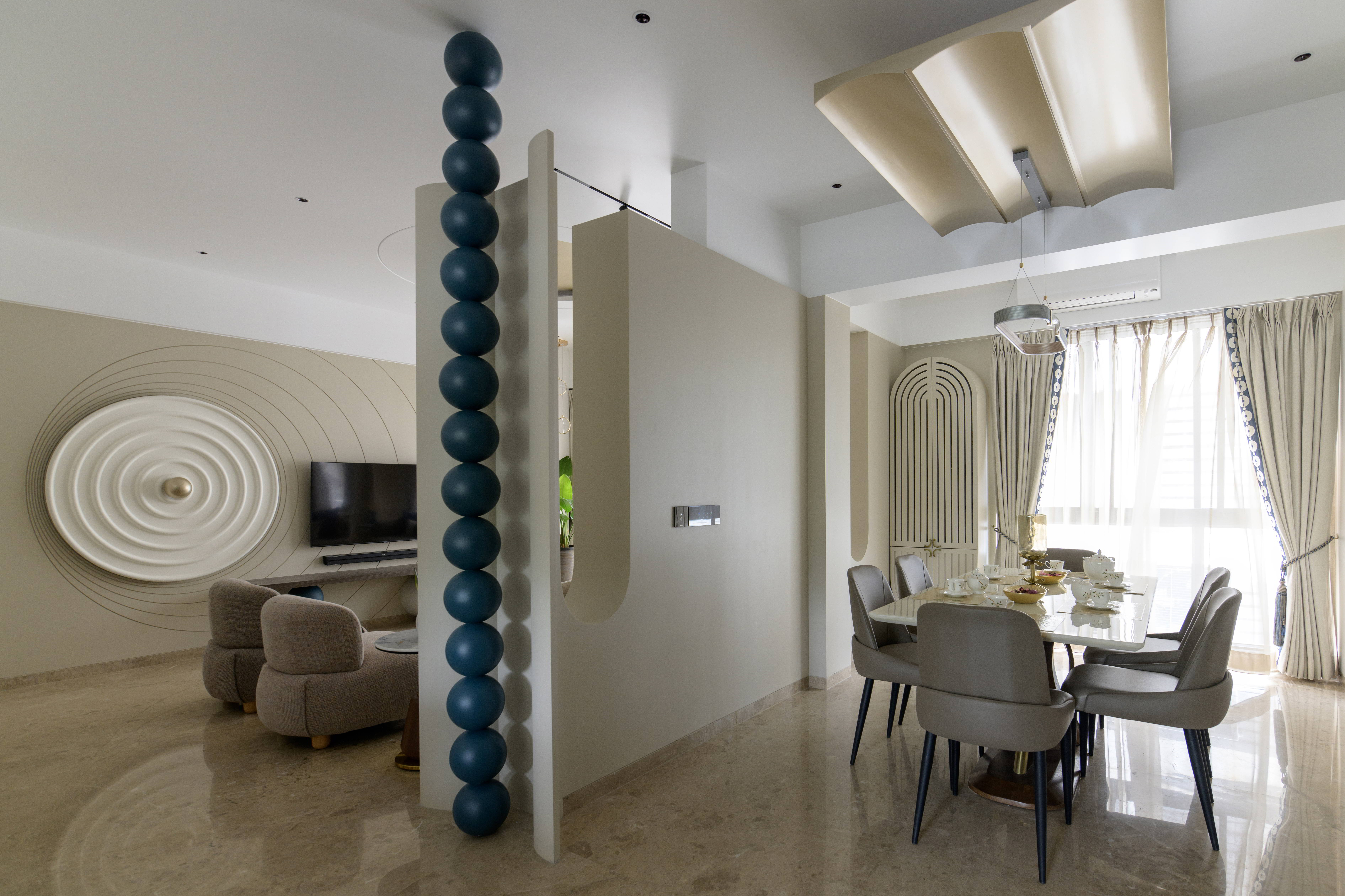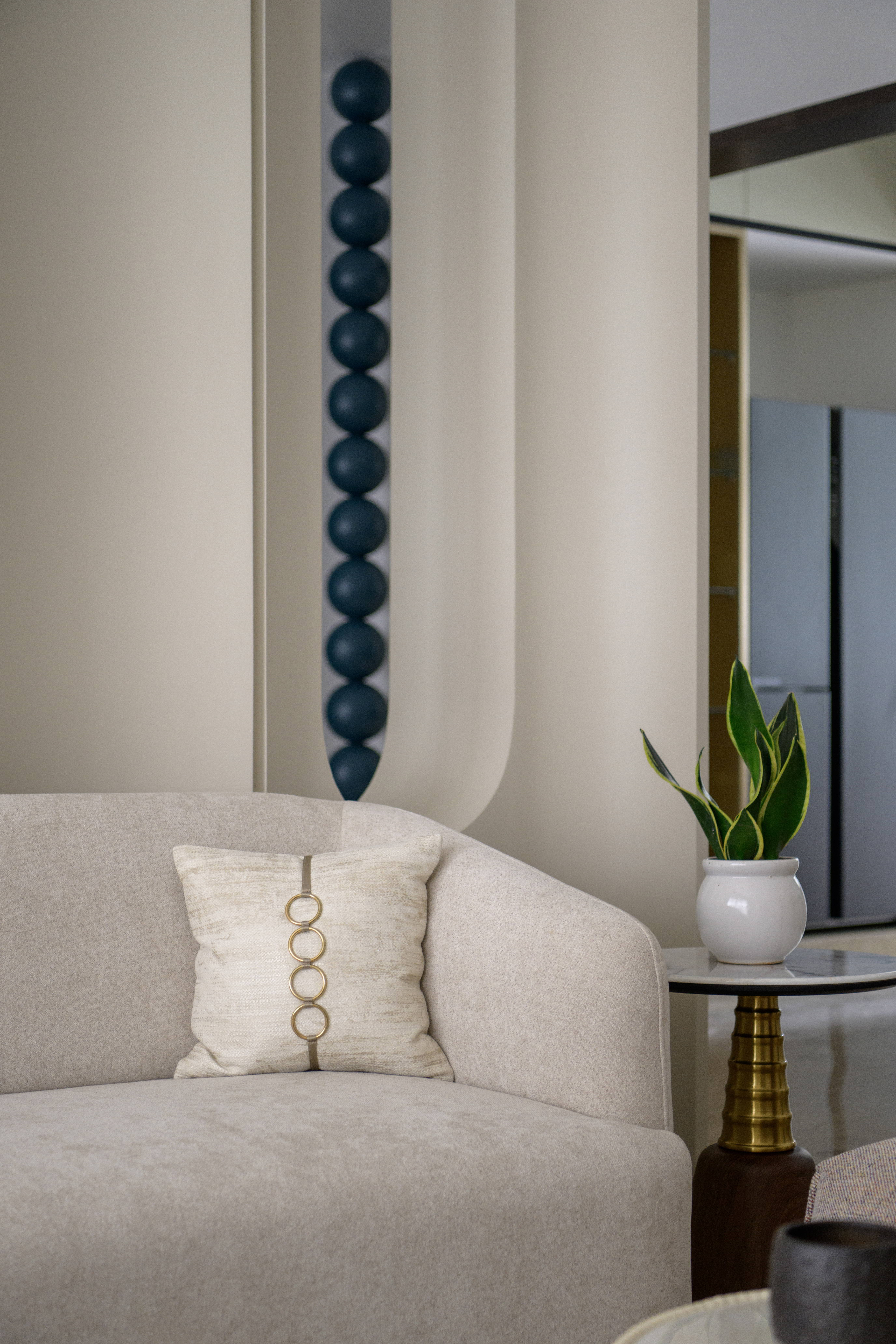 A subtle thematic thread runs through the house, an understated sphere motif. This theme is most evident in the living room and is mindfully carried into the private spaces in smaller, refined ways, tying the entire home together visually and conceptually. Each room is designed with its user in mind, ensuring comfort, personalization, and ease of use without compromising on style. Client-centricity remained at the heart of the design process. Every element, from layout decisions to material selections, reflects the family’s needs, preferences, and lifestyle.